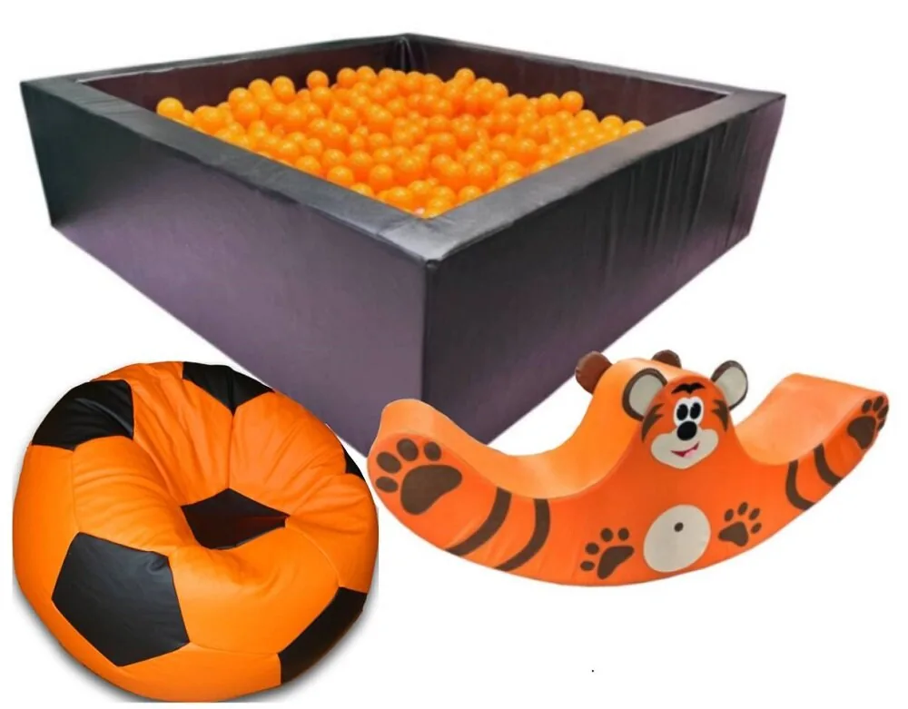 1. Сухой бассейн квадратный черный 100*100*40 - 1 шт. 2. Шар для сухого бассейна - 500 шт. 3. Кресло "Мяч" Д-80 оранжевый/черный - 2 шт. 4. Детская качалка двойная "Тигренок" - 1 шт. Вопросы/ отзывы о Набор мягких модулей для игровой комнаты №11Вопросов пока не было. Вы можете оставить его первым
