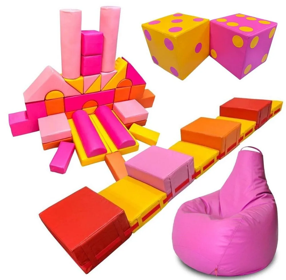 1. Мягкий модульный Конструктор «Городок» 34 предмета - 1 компл. 2. Игровой набор мягких модулей «Бросайка-кидайка» - 1 компл. 3. Дорожка «Кочки» (6 предметов) - 1 шт. 4. Кресло "Груша" - 1 шт. Вопросы/ отзывы о Набор мягких модулей для игровой комнаты №16Вопросов пока не было. Вы можете оставить его первым